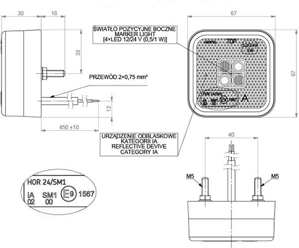LAMPA OBRYSOWA Lampa obrysowa kwadratowa z odblaskiem, pomarańczowa.