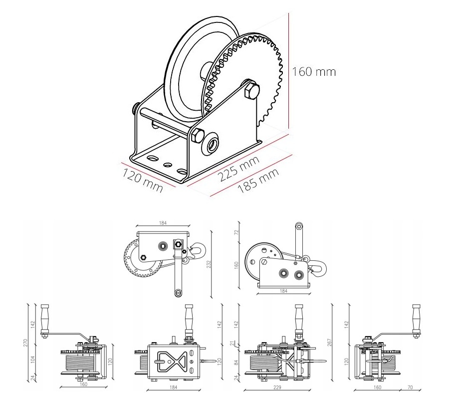 Wciągarka ręczna Dragon 2500 lbs z liną 1135 kg